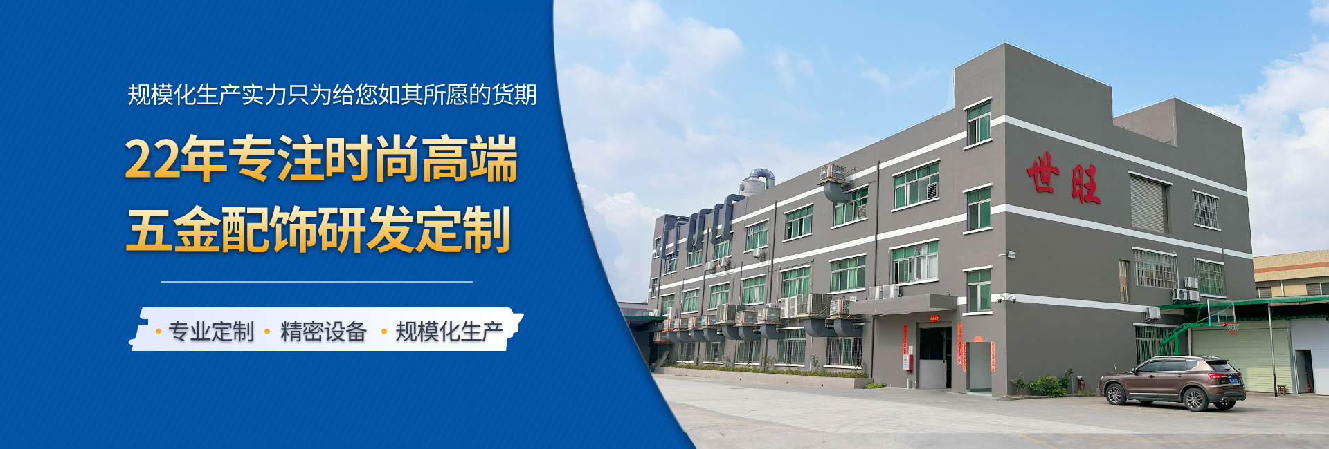 世旺五金是一家專業(yè)從事手袋箱包五金配飾定制生產(chǎn)的工廠,始創(chuàng)于2004年,至今19年五金配飾定制經(jīng)驗(yàn),是集研發(fā)、設(shè)計、制造、電鍍、銷售于一身的企業(yè),擁有14000多平的生產(chǎn)基地,全自動化生產(chǎn)能力,自有模具制造車間和電鍍工廠,日產(chǎn)能20多萬件,還有強(qiáng)大的技術(shù)團(tuán)隊(duì)和高效的銷售網(wǎng)絡(luò)。我們以市場需求為導(dǎo)向,不斷探索和創(chuàng)新,在產(chǎn)品品質(zhì)和性能上達(dá)到領(lǐng)先水平。 我們的產(chǎn)品包括各類五金制品,如高端皮具手袋、消費(fèi)電子、禮品/工藝品包裝、寵物穿戴、汽車裝飾等領(lǐng)域五金配飾,應(yīng)用廣泛,覆蓋行業(yè)多。 以客戶需求為中心,為客戶提供全方位的一站式服務(wù),包括售前咨詢,生產(chǎn)跟進(jìn),售后服務(wù)等等。提供保姆式顧問式服務(wù),與品牌商、手袋廠等共同打造好產(chǎn)品,好IP。